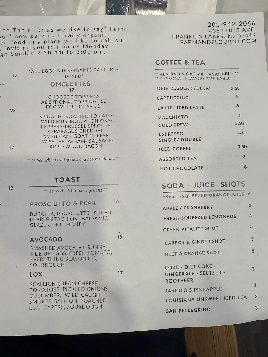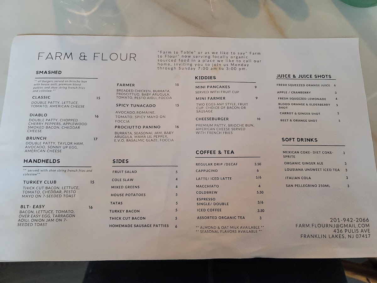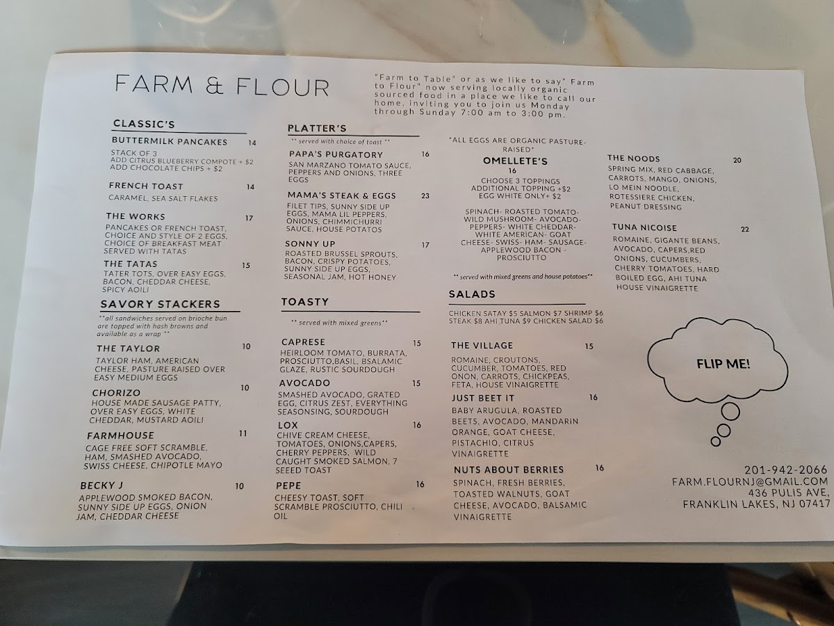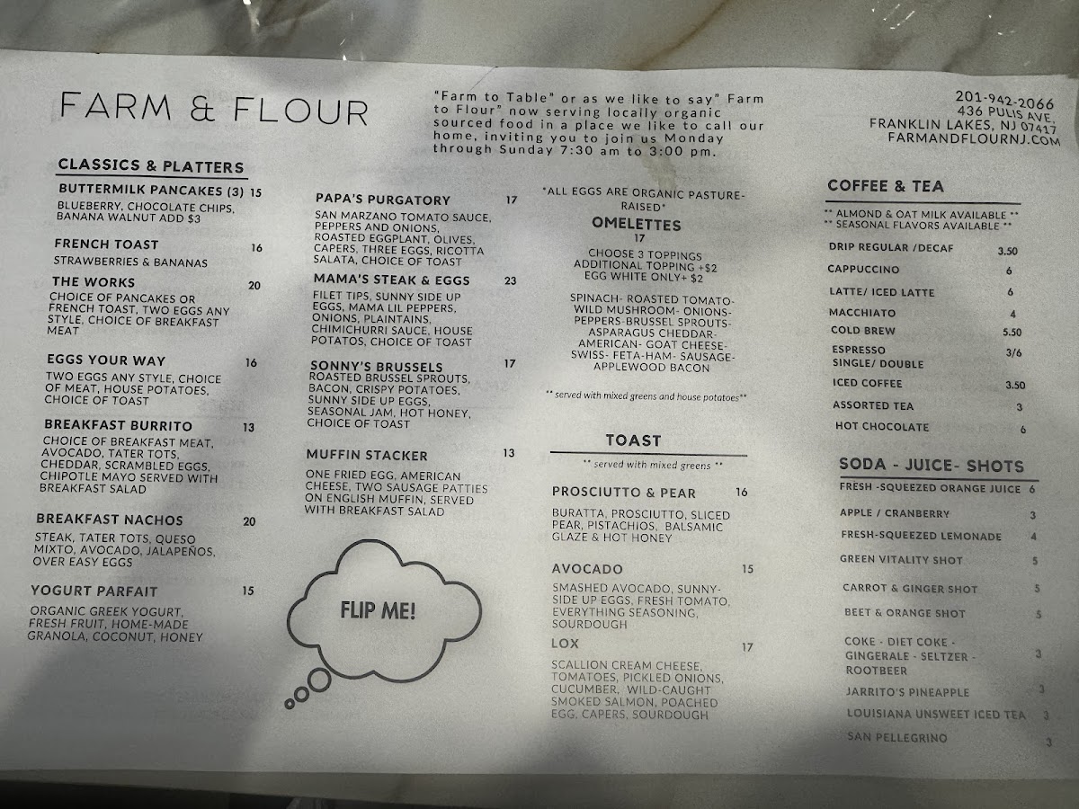 Farm & Flour Menu has a way of pulling you in the moment you sit down, thanks to its cozy spot along 434-436 Pulis Ave in Franklin Lakes. What stands out right away is how the dishes feel both comforting and a little adventurous, as if someone took familiar favorites and gave them a thoughtful twist. You’ll find everything from fresh-baked breads to hearty plates that make you slow down and actually enjoy each bite, and it all comes together with an easy, welcoming vibe.